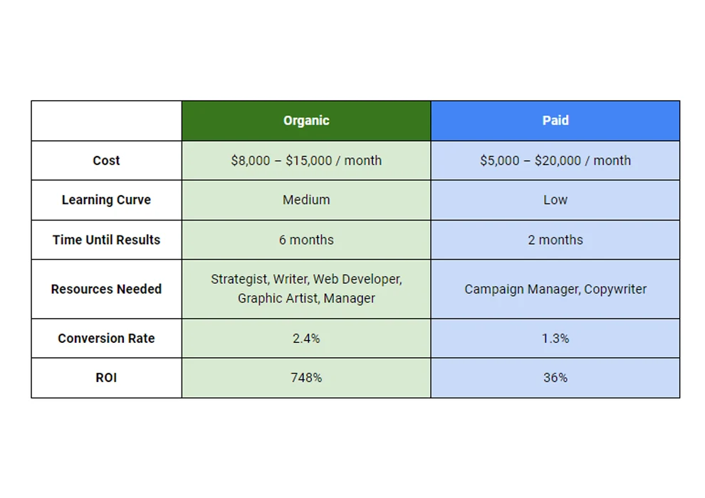 Organic builds trust; paid scales fast but needs strong creative.